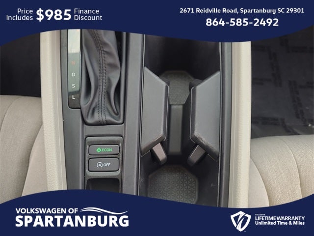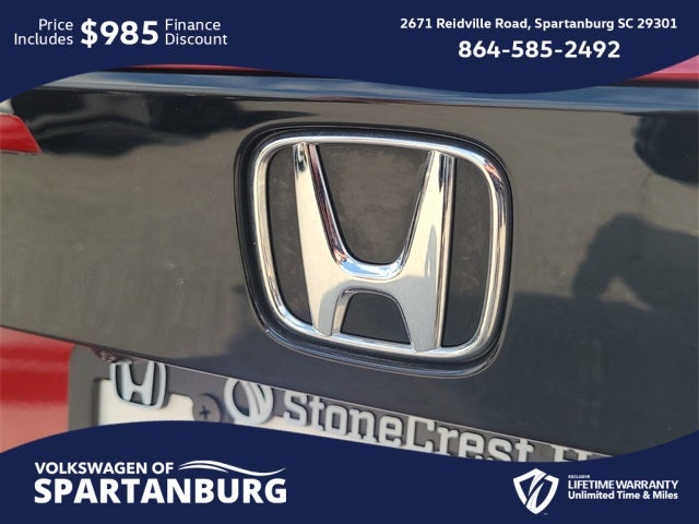 **BACKUP CAMERA**, **Bluetooth®**, USB CHARGING PORTS, **LOCAL TRADE**, **SUPER CLEAN**, Stonecrest Honda Home of the LIFETIME WARRANTY*, **CUSTOM WHEELS**, **STILL UNDER FACTORY WARRANTY**, **LOW MILES**, **Push-Button START!**, Black Cloth, ABS brakes, Adaptive Cruise Control: Adaptive Cruise Control (ACC) with Low-Speed Follow, Air Conditioning, Alloy wheels, AM/FM radio, Apple CarPlay/Android Auto, Auto High-beam Headlights, Automatic temperature control, Brake assist, Compass, Delay-off headlights, Dual front impact airbags, Dual front side impact airbags, Electronic Stability Control, Emergency communication system: HondaLink Assist, Exterior Parking Camera Rear, Four wheel independent suspension, Fully automatic headlights, Illuminated entry, Lane departure: Lane Keeping Assist System (LKAS) active, Outside temperature display, Panic alarm, Power door mirrors, Power windows, Radio data system, Radio: 160-Watt AM/FM Audio System, Remote keyless entry, Security system, Speed control, Speed-sensing steering, Speed-Sensitive Wipers, Steering wheel mounted audio controls, Traction control, Variably intermittent wipers, Wheels: 17 x 7.5 Blade Silver. 🌟 Welcome to the All-New Volkswagen of Spartanburg! 🚗✨ We are excited to introduce our latest lineup of Volkswagen vehicles and quality pre-owned options of all makes and models. At Volkswagen of Spartanburg, we are committed to providing exceptional customer service. Our knowledgeable and friendly sales team is ready to assist you in finding the perfect vehicle that fits both your lifestyle and budget. We are dedicated to ensuring that your car-buying journey is seamless and enjoyable from start to finish. 📍 Visit Us Today at Volkswagen of Spartanburg: Come in and see for yourself why we are the leading Volkswagen dealership in the area: 2671 Reidville Rd, Spartanburg, SC 29301 or call us at (864) 585-2492. We look forward to welcoming you and helping you drive away in your dream car! 29/37 City/Highway MPG